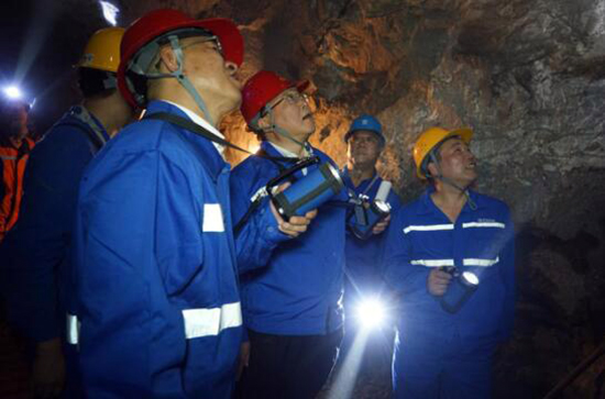 2019年10月21日,中國(guó)有色集團(tuán)黨委書記、董事長(zhǎng)王彤宙深入出資企業(yè)井下作業(yè)現(xiàn)場(chǎng)開(kāi)展融入式調(diào)研。